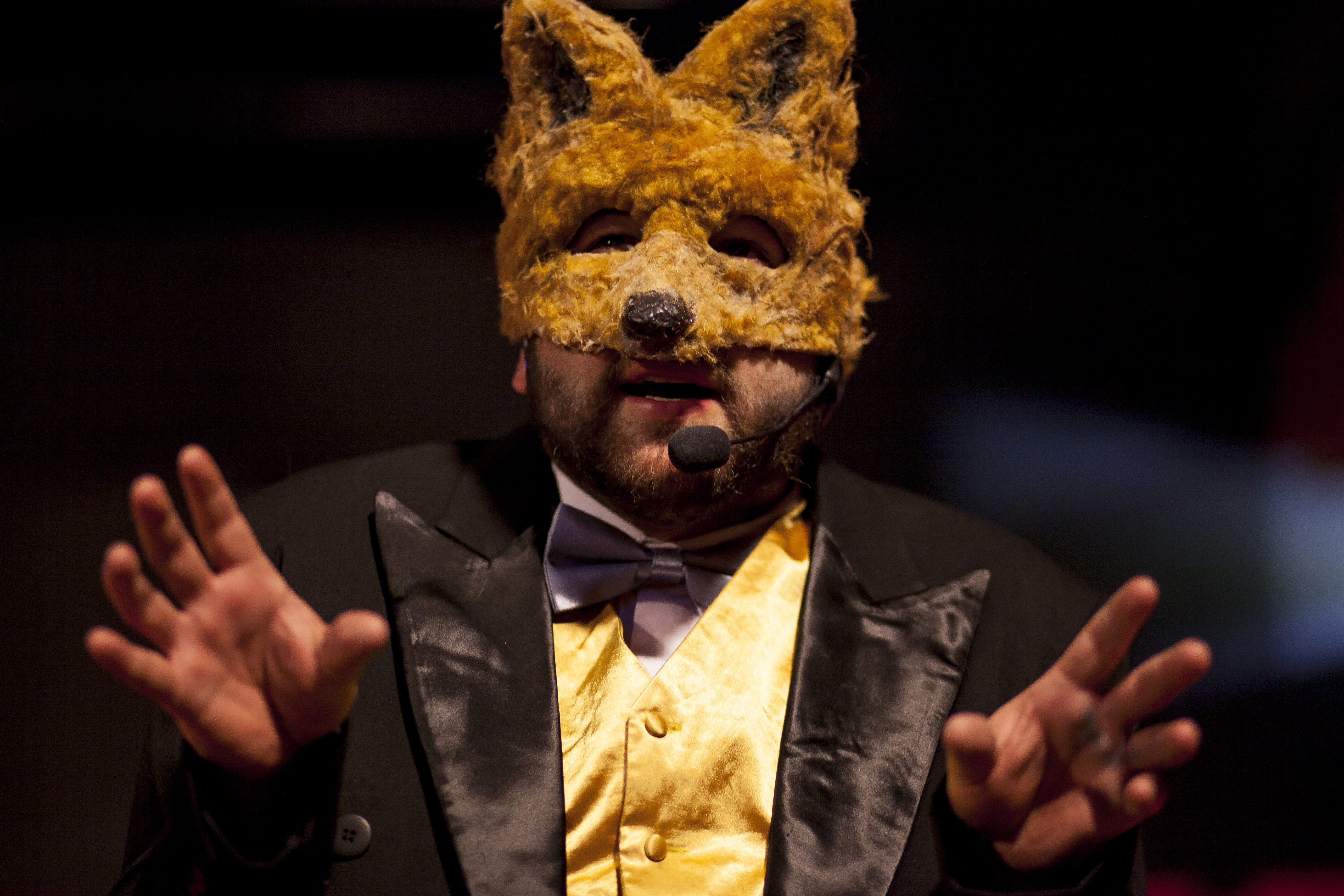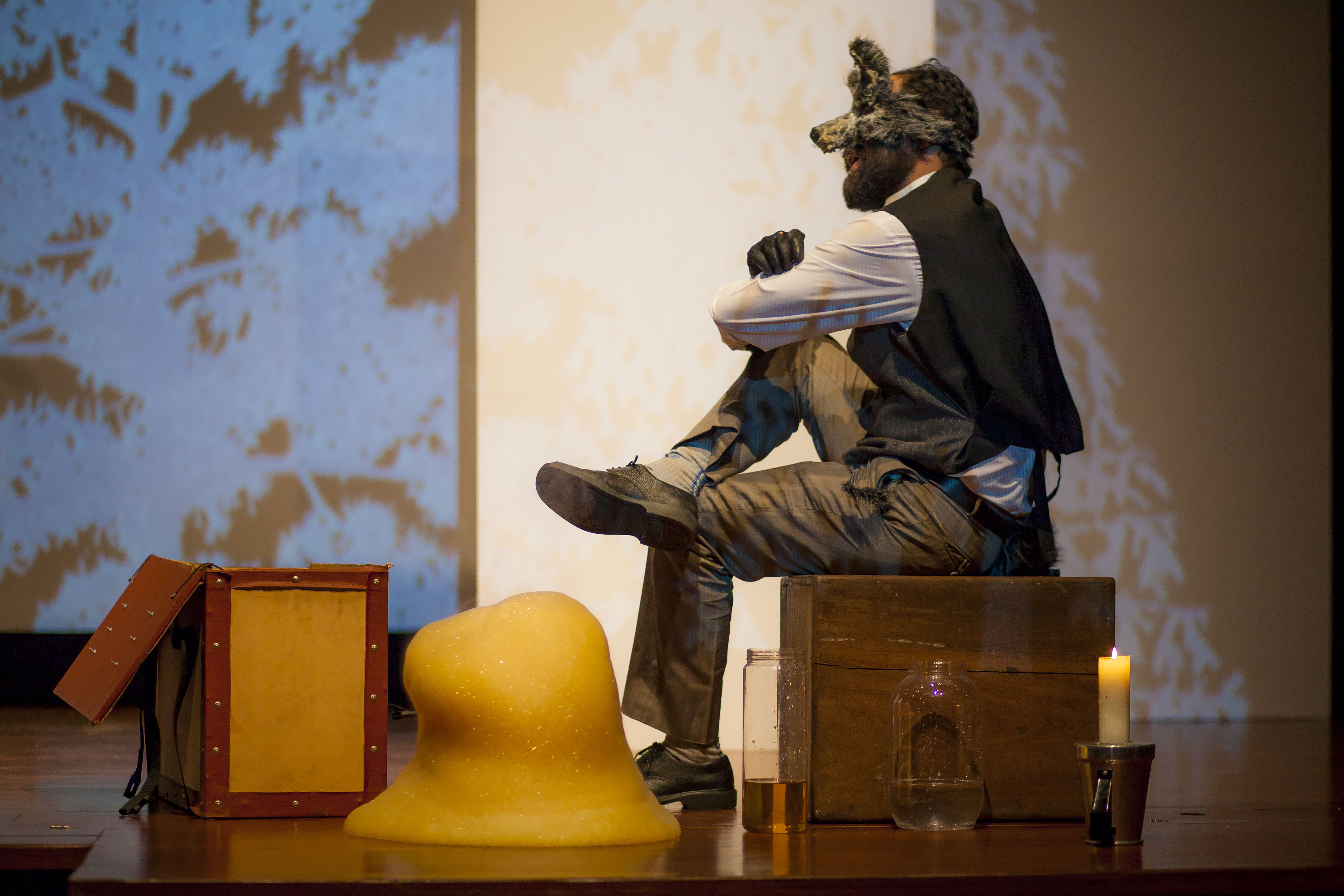 Fabulación es una experimentación teatral en vivo, donde converge la química y la magia personificadas en un zorro y un lobo, ambos territoriales por instinto, ambos audaces. Uno aparentemente más fuerte que el otro, el otro, tal vez, más ágil, y algo en común: su búsqueda por entender los fenómenos de la naturaleza y ser reconocidos como el más astuto.